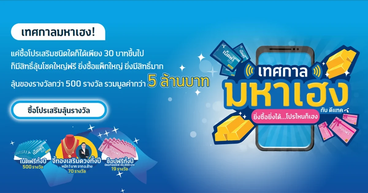 ลูกค้าดีแทค เฮงทั้งปี! ลุ้นรับโชคใหญ่ส่งท้ายปีเก่าต้อนรับปีใหม่ 'เทศกาลมหาเฮง' รางวัลมูลค่ากว่า 5 ล้านบาท