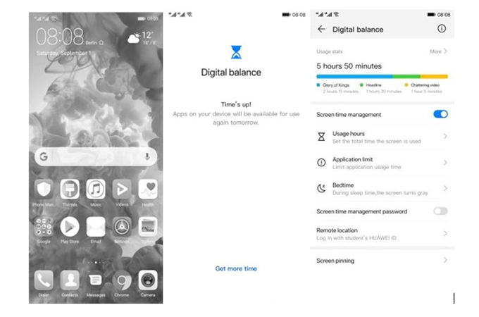 • บาลานซ์ชีวิตบนโลกดิจิทัลด้วยฟีเจอร์ Digital Balance ที่จะช่วยบริหารเวลาการใช้งานสมาร์ทโฟนในแต่ละวัน ว่าในหนึ่งวันเปิดแอพพลิเคชั่นใดบ้าง เป็นเวลากี่ชั่วโมง โดยผู้ใช้สามารถจำกัดเวลาการใช้แอพฯ บางแอพฯ ได้ เช่น ผู้ปกครองสามารถจำกัดเวลาการเล่นเกมของเด็ก ๆ ได้วันละ 2 ชั่วโมงจากนั้นแอพฯ จะปิดเพื่อให้เด็ก ๆ ไปทำกิจกรรมสนุก ๆ อย่างอื่นนอกบ้าน รวมถึงสมาร์ทโฟนสามารถเปลี่ยนหน้าจอเป็นสีเทาเพื่อเตือนเราว่าได้เวลาเข้านอนแล้วอีกด้วย