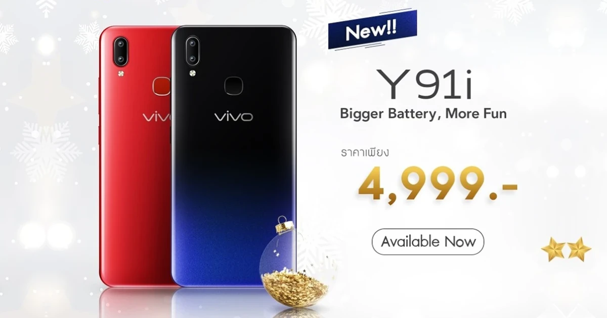 Vivo Y91i สมาร์ทโฟนจอกว้าง แบตฯ สุดอึด พร้อมวางจำหน่าย 22 ธ.ค. 61 ในราคาเพียง 4,999 บาท