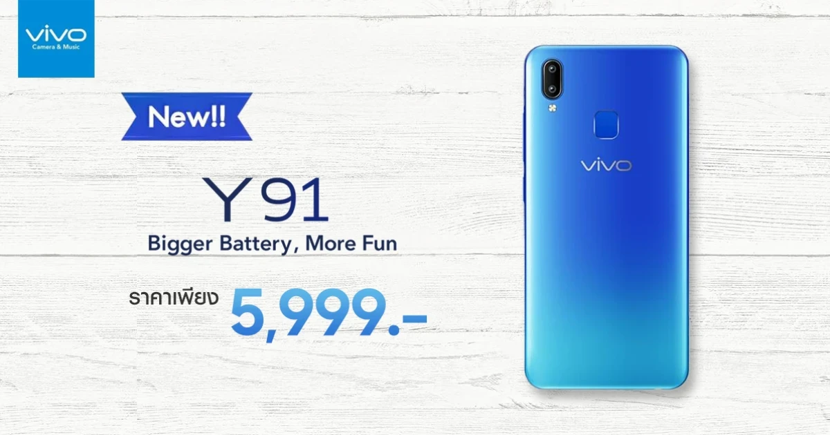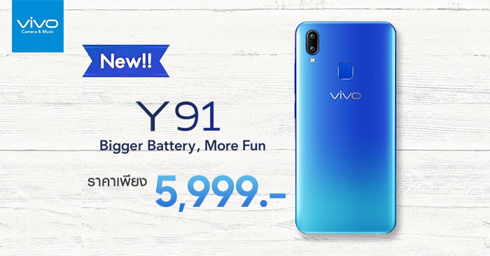 Vivo Y91 จัดเต็มรับปี 2019 ในราคาสุดคุ้ม 5,999.- พร้อมสีใหม่สุดสวย Ocean Blue