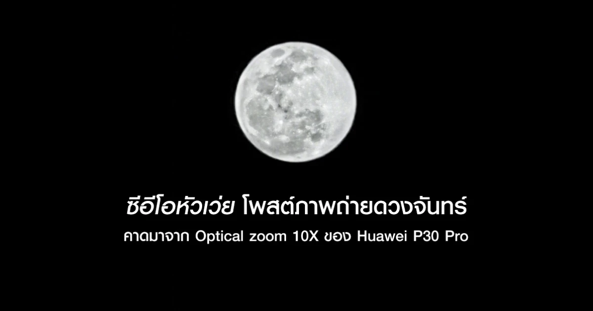 ซีอีโอหัวเว่ย โพสต์ภาพถ่ายดวงจันทร์ คาดมาจาก Optical zoom 10X ของสมาร์ทโฟน Huawei P30 Pro