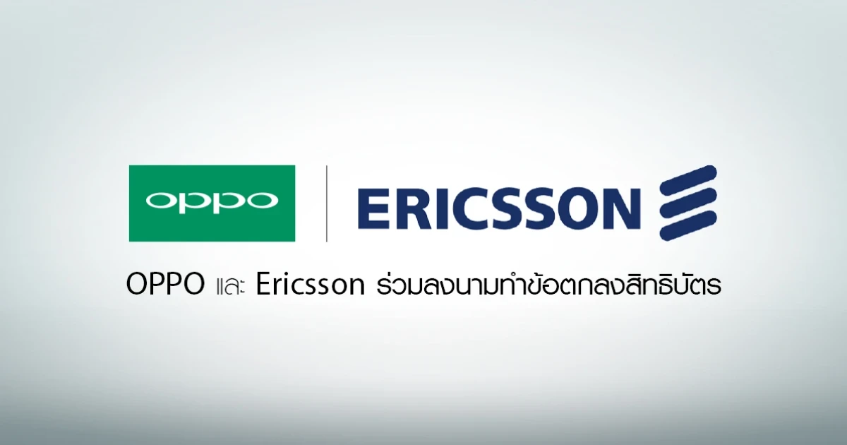 OPPO และ Ericsson ลงนามทำข้อตกลงสิทธิบัตร พร้อมผลักดันนวัตกรรมล้ำสมัยด้านผลิตภัณฑ์และบริการ