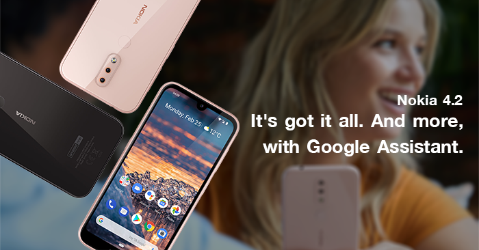 นอกจาก HMD จะสร้างความฮือฮาด้วยการเปิดตัว Nokia 9 PureView สมาร์ทโฟนรุ่นใหม่ที่มาพร้อมกล้องหลัง 5 ตัวรุ่นแรกของโลกแล้ว ยังได้เปิดตัวสมาร์ทโฟนรุ่นใหม่อีกถึง 4 รุ่นด้วยกัน ซึ่งหนึ่งในนั้น คือ Nokia 4.2 สมาร์ทโฟนรุ่นกลางที่มาพร้อมดีไซน์และเทคโนโลยีล้ำสมัย พร้อมปุ่มกดสำหรับเรียกใช้งาน Google Assistant และกล้องอันทรงประสิทธิภาพในราคาที่จับต้องได้