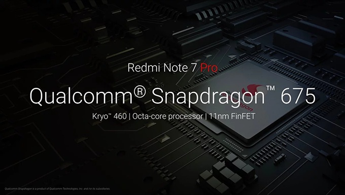Redmi Note 7 Pro มาพร้อมหน้าจอขนาด 6.3 นิ้ว ความละเอียด Full HD+ อัตราส่วน 19.5:9 บอดี้กระจก Corning Glrilla Glass 5 ทั้งด้านหน้าและด้านหลัง ขับเคลื่อนด้วยขุมพลัง Snapdragon 675 จาก Qualcomm จับคู่กับ GPU Adreno 612 พร้อมหน่วยความจำให้เลือก 2 แบบ คือ RAM 4GB + ROM 64GB และ RAM 6GB + 128GB รองรับ MicroSD สูงสุด 512GB