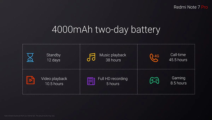 Redmi Note 7 Pro ยังคงมาพร้อมกับช่องต่อหูฟังขนาด 3.5 มิลลิเมตร และพอร์ตเชื่อมต่อ USB Type-C รองรับ Dual SIM และ Dual VoLTE ทำงานบนระบบปฏิบัติการ Android 9 Pie ครอบทับด้วย MIUI 10 และแบตเตอรี่ขนาด 4,000 mAh รองรับ Quick Charge 4.0 18W