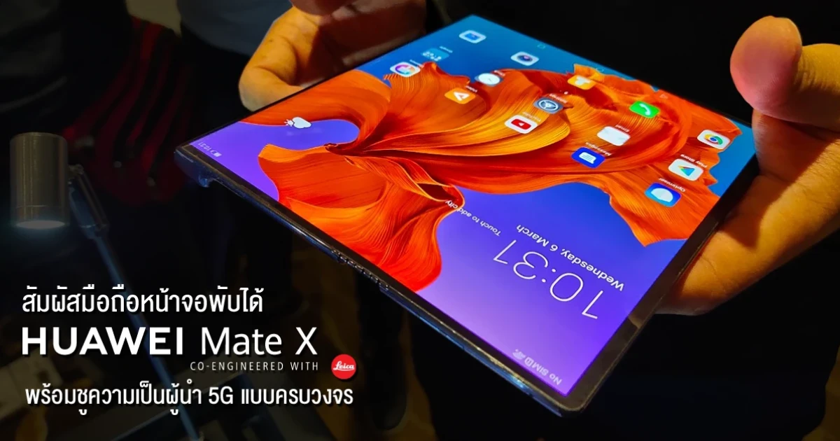 Huawei เผยโฉมสมารืทโฟนที่ร้อนแรงที่สุดในโลกตอนนี้ Huawei Mate X สมาร์ทโฟน 5G แบบพับหน้าจอได้ที่เร็วที่สุดในโลก ให้ผู้สื่อข่าวชาวไทยได้ยลโฉมเป็นครั้งแรก พลภัทร์ สายบัวทอง ผู้จัดการฝ่ายผลิตภัณฑ์ หัวเว่ย คอนซูมเมอร์ บิสสิเนส กรุ๊ป (ประเทศไทย) กล่าวว่า "Huawei Mate X คือจุดเริ่มต้นของสมาร์ทโฟนแห่งยุคอนาคตที่ผสานทั้งเทคโนโลยี 5G แนวคิดสมาร์ทโฟนที่มีหน้าจอพับได้ ปัญญาประดิษฐ์ (AI) และส่วนต่อประสานผู้ใช้แบบไม่เหมือนใครเข้าด้วยกันเพื่อสร้างสรรค์ประสบการณ์การใช้งานใหม่ๆ จากสมาร์ทโฟนแนวคิดใหม่ หัวเว่ยผสานพาเนลจอแบบ OLED ที่ยืดหยุ่นได้เข้ากับบานพับกลไกแบบฟัลคอนวิง (Falcon Wing Mechanical Hinge) ผสานข้อดีของทั้งสมาร์ทโฟนและแท็บเล็ตไว้อย่างลงตัว หน้าจอ FullView OLED แบบยืดหยุ่นได้และชิปเซ็ต Balong 5000 ชิปเซ็ตโมเด็ม 5G ที่มีความเร็วสูงที่สุดในปัจจุบันนำเสนอประสบการณ์การใช้งานใหม่ๆ ที่ไม่เหมือนใคร ทั้งหน้าจอขนาดใหญ่และความสะดวกในการพกพา