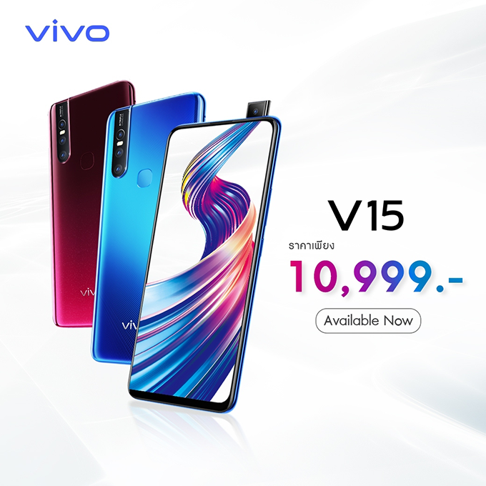 Vivo V15 เปิดวางจำหน่ายอย่างเป็นทางการแล้ว หลังจากที่ได้มีการเปิด Pre -Order เมื่อวันที่ 16 - 27 มีนาคม 2562 ที่ผ่านมา โดย Vivo V15 นอกเหนือจากกล้องหน้าแบบเลื่อนอัตโนมัติ (Elevating Front Camera) 32 ล้านพิกเซล และเทคโนโลยีที่เกี่ยวกับการถ่ายภาพอย่าง AI Triple Camera กล้องหลัง 3 ตัว 24 ล้านพิกเซล ที่จะทำให้การถ่ายภาพโปรด้วยโทรศัพท์สมาร์ทโฟนเหนือระดับขึ้นไปอีกขั้น