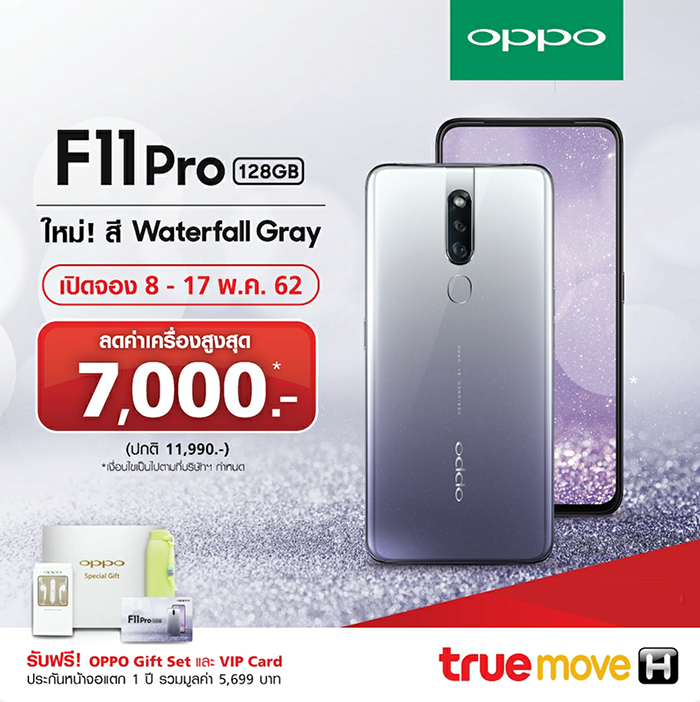 จอง OPPO F11 Pro สีใหม่ Waterfall Gray กับ TrueMove H ลดค่าเครื่องสูงสุด 7,000 บาท วันนี้ - 17 พ.ค. 62
