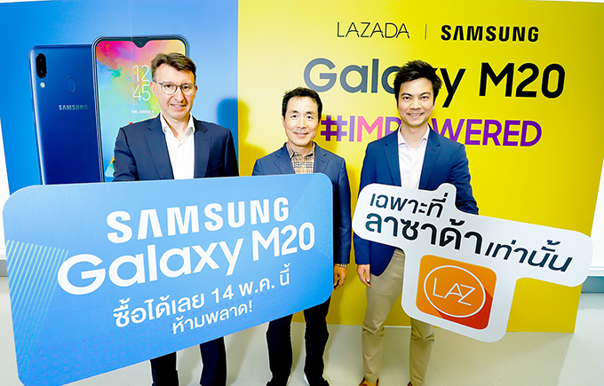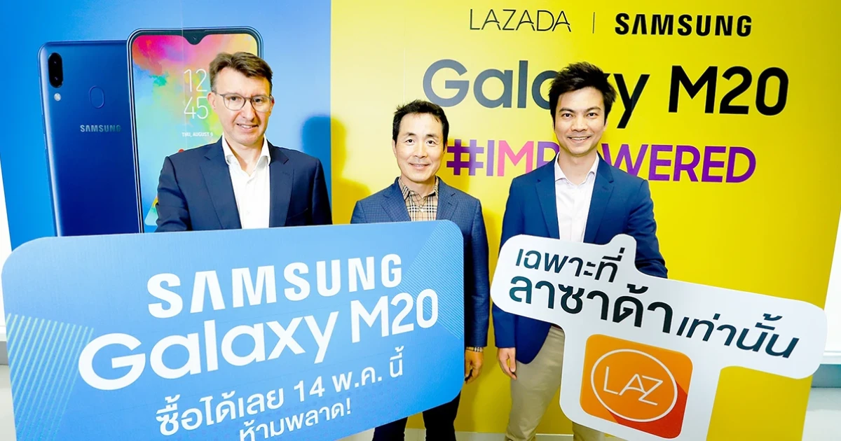 สองยักษ์ใหญ่ ซัมซุง ผู้นำด้านนวัตกรรมและเทคโนโลยีระดับโลก และ Lazada (ลาซาด้า) ผู้นำด้านอีคอมเมิร์ซเอเชียตะวันออกเฉียงใต้ เปิดตัวสมาร์ทโฟนรุ่นใหม่ราคาประหยัด "Samsung Galaxy M20" (ซัมซุง กาแลคซี่ เอ็ม 20)" บนแอปพลิเคชันลาซาด้าแบบเอ็กซ์คลูซีฟเป็นครั้งแรก หลังเปิดเผยสเปคให้แฟน ๆ รอคอยตั้งแต่ต้นปีที่ผ่านมา มั่นใจเจาะตลาดคนรุ่นใหม่ด้วยจุดเด่นแบตอึด จอใหญ่ ไร้ขอบ สเปคครบครันในราคาที่จับต้องได้ พร้อมจำหน่ายอย่างเป็นทางการบน LazMall (ลาซมอล) 14 พฤษภาคมนี้