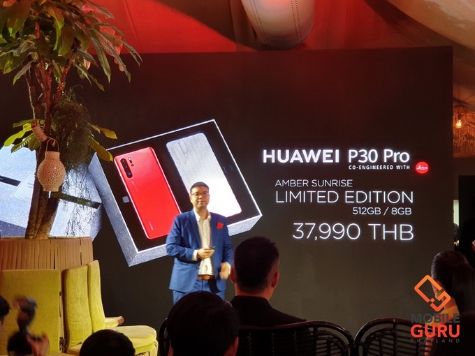 HUAWEI P30 Pro Limited Edition สี Amber Sunrise โดดเด่นด้วยกล้องถ่ายภาพที่ยกระดับการถ่ายภาพบนสมาร์ทโฟนไปอีกขั้น ใช้เซ็นเซอร์ใหม่ สามารถเห็นภาพสว่างได้ดีขึ้นแม้แสงน้อยด้วย Leica Quad Camera เห็นใกล้มากกว่าที่เคย ด้วยเลนส์ SuperZoom ที่สามารถซูมแบบออพติคัลได้ถึง 5 เท่า ซูมแบบไฮบริด 10 เท่า และซูมแบบดิจิทัลสูงสุด 50 เท่า เก็บทุกจังหวะได้ไม่พลาดด้วย Dual-View Video ถ่ายวิดีโอได้สองระยะพร้อมกันในครั้งเดียว และ Super Bokeh Portrait การถ่ายภาพบุคคลที่สวยงามมีมิติ HUAWEI P30 Pro มาพร้อมสีสันสวยงามที่จะนำเทรนด์ได้ตลอดปี ใช้ระบบปฏิบัติการ EMUI 9.1 พร้อมหน่วยความจำ (ROM) ใหญ่จุใจถึง 512 GB ให้บันทึกความประทับใจในทุกช่วงเวลา ภายในงานเปิดตัวเต็มไปด้วยแขกรับเชิญสายแฟชั่นผู้มีสไตล์จัดจ้านเป็นของตัวเอง อาทิ มิ้นต์-ชาลิดา วิจิตรวงศ์ทอง, พีค-ภัทรศยา เครือสุวรรณศิริ, พร้อมกองทัพผู้เข้าประกวดจาก The FACE Thailand Season 5