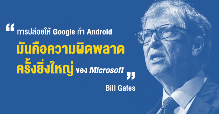 คนที่ประสบความสำเร็จมามากมายอย่าง Bill Gates หนึ่งในบุคคลทรงอิทธิพลแห่งวงการไอที ก็มีวันที่ผิดพลาดกับเขาเหมือนกัน แถมยังเป็นความผิดพลาดที่ทาง Bill Gates ถึงกับออกปากว่า ไม่น่าให้อภัยตัวเองเลยทีเดียว กับการที่เขาได้ปล่อยให้ Google ทำระบบปฏิบัติการ Android ขึ้นมา ทั้งทีตัวเขาเองก็เคยมีโอกาสที่จะทำก่อน