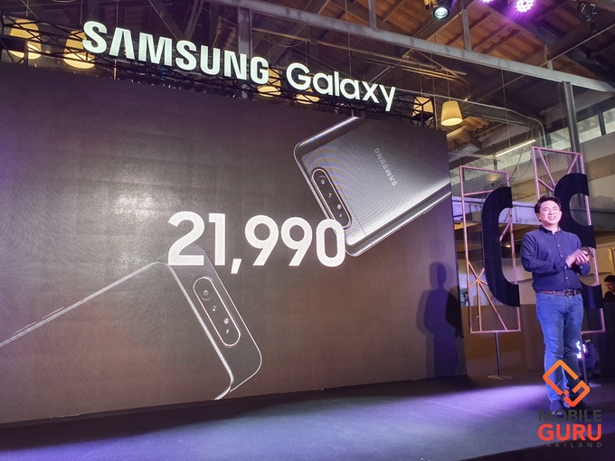 หรือเลือกรับ หูฟังบลูทูธ AKG สีน้ำเงิน รุ่น Y500 มูลค่า 3,990 บาท ทั้งนี้ของสมนาคุณทั้ง 2 อย่างมีจำนวนจำกัด! โดยผู้ที่สั่งซื้อจะได้รับของสมนาคุณพร้อมกับรับเครื่อง Samsung Galaxy A80 ระหว่างวันที่ 18 - 20 กรกฎาคม 2562 โดยมีให้เลือกทั้งหมด 3 สี ได้แก่ สี Phantom Black, สี Angel Gold, และสี Ghost White วางจำหน่ายที่ราคา 21,990 บาท
