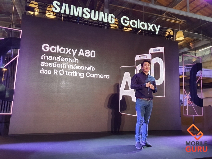 Samsung Galaxy A80 ถูกสร้างสรรค์ขึ้นเพื่อตอบสนองผู้บริโภคในยุคแห่งการไลฟ์ เพื่อให้พวกเขาสามารถถ่ายทอดเรื่องราวประทับใจได้อย่างเรียลไทม์ ผ่านนวัตกรรมใหม่ล่าสุด ไม่ว่าจะเป็นกล้อง ดีไซน์ รวมถึงประสิทธิภาพที่ครบครันสำหรับคนรุ่นใหม่ นี่คือปรากฎการณ์แรกของตระกูล กาแลคซี่ ที่สมาร์ทโฟนมาพร้อมกับ Rotating Triple Camera หรือกล้องหมุนได้ถึง 3 ตัว เพื่อให้ได้ความละเอียดคมชัดแบบเดียวกันทั้งกล้องหน้าและหลัง ด้วยกล้องหลักความละเอียด 48 ล้านพิกเซลทั้งยังมาพร้อมกับเลนส์ Ultra Wide ที่ให้มุมมองภาพกว้างถึง 123 องศา ช่วยให้ผู้ใช้สามารถบันทึกทุกสิ่งรอบตัวได้อย่างไร้ขีดจำกัด และเลนส์ 3D Depth ที่มาพร้อมกับโหมด Live Focus ถ่ายภาพนิ่งและภาพวิดีโอได้หน้าชัดหลังเบลอสวยสมใจ นอกจากนั้นยังมีโหมด Super Steady หรือ Hyperlapse ที่ทำให้การถ่ายวีดีโอสนุกยิ่งขึ้นทั้งกล้องหน้าและกล้องหลัง จึงมั่นใจได้ว่าคุณจะสามารถแชร์ทุกอย่างที่ตาเห็นผ่านภาพถ่ายและวิดีโอได้อย่างเสมือนจริง ไม่ว่าจะเป็นกลางวันหรือกลางคืน
