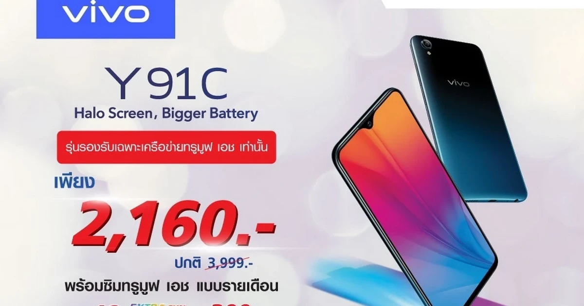 ซื้อสมาร์ทโฟน Vivo Y91C ราคาพิเศษ เพียง 2,160 บาท พร้อมซิมรายเดือน 299 บาท นาน 10 เดือน