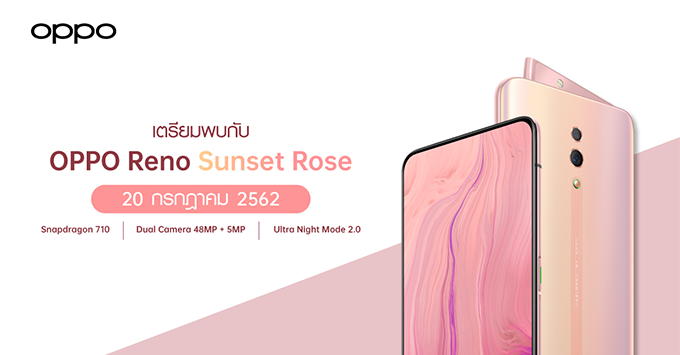 OPPO Reno สีใหม่ Sunset Rose Limited Edition วางจำหน่าย 20 ก.ค. นี้ เพียง 16,990 บาทเท่านั้น!