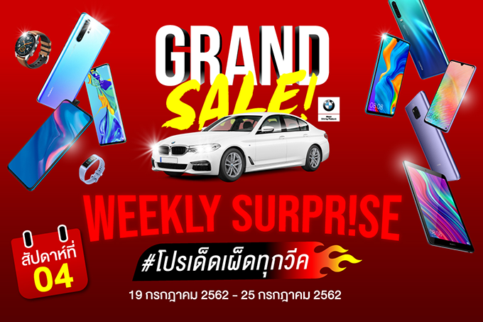 หลังจากเปิดตัวแคมเปญโปรโมชั่นครั้งใหญ่แห่งปี HUAWEI Grand Sale 2019 ไปในช่วงปลายเดือนมิถุนายนที่ผ่านมา ซึ่งนอกจากลูกค้าจะได้รับสิทธิ์ลุ้นเป็นเจ้าของ "BMW 520d M Sport" รถยนต์สุดหรู มูลค่ากว่า 3.5 ล้านบาทแล้ว ยังสามารถซื้อสินค้าโดยการผ่อน 0% นานถึง 6 เดือนอีกด้วย โดยแต่ละสัปดาห์ลูกค้าจะพบกับราคาพิเศษสุดเซอร์ไพรส์ใน "โปรเด็ด เผ็ดทุควีค" ที่มาพร้อมกับของแถมสุดคุ้มอีกหลายรายการอีกด้วย