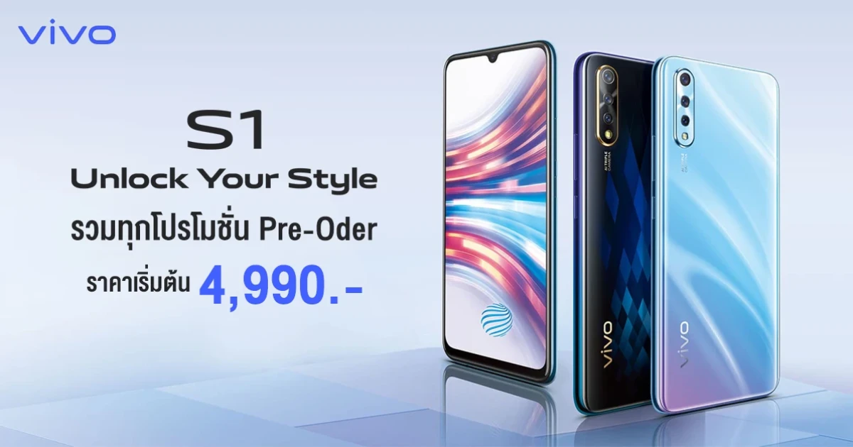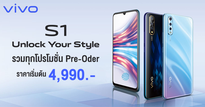 เปิดให้จองแล้ว Vivo S1 ราคา 8,999 บาท สมาร์ทโฟนจอ FullHD Super AMOLED ขนาด 6.38 นิ้ว มีเซ็นเซอร์สแกนลายนิ้วมือบนหน้าจอ มาพร้อมกล้องหน้า 32 MP และกล้องหลัง 3 ตัว แบตอึด รองรับชาร์จไว รับของพรีเมียมฟรี! S1 Boxset และกระเป๋าสะพาย