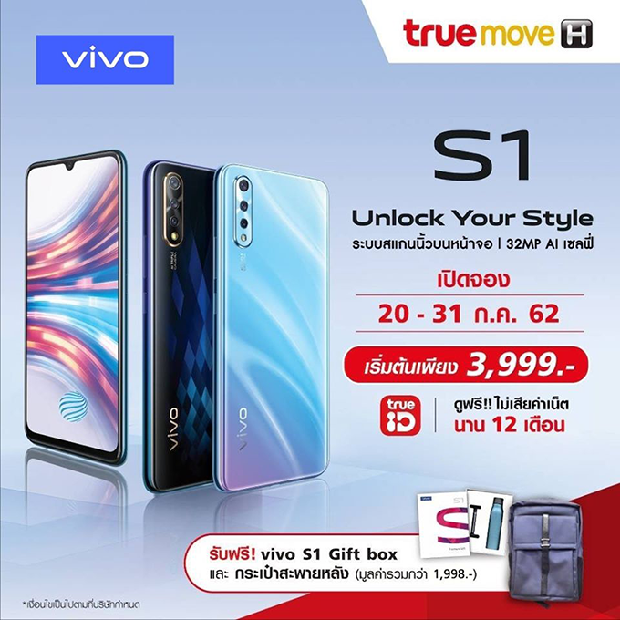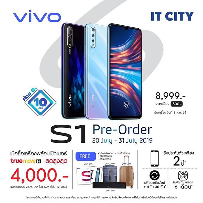 ใหม่ Vivo S1 เปิดจองแล้ว 20 - 31 กรกฎาคม 2562 ที่ทรูช้อปทุกสาขา เริ่มเพียง 3,999 บาท เท่านั้น
