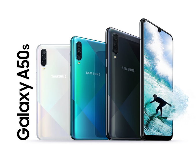 Samsung Galaxy A50s มาพร้อมหน้าจอ Infinity-U Display ชนิด Super AMOLED ขนาด 6.4 นิ้ว ความละเอียด Full HD+, Exynos 9610 Quad 2.3GHz + Quad 1.7GHz, RAM 4/6GB, ROM 64/128GB รองรับ MicroSD 512GB, กล้อง 3 ตัว ความละเอียด 48MP (F2.0) + 5MP + 8MP (Ultra Wide) กล้องหน้าความละเอียด 32MP (F2.0), แบตเตอรี่ความจุ 4,000 mAh รองรับชาร์จเร็ว 15W Fast Charging, สแกนลายนิ้วมือใต้หน้าจอ และใช้ USB Type-C และรองรับ Bixby