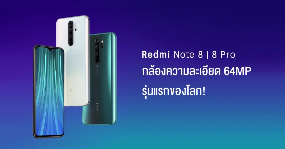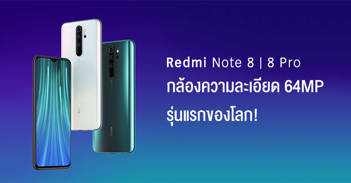 Xiaomi Redmi Note 8 และ Redmi Note 8 Pro สมาร์ทโฟนกล้องความละเอียด 64 MP รุ่นแรกของโลก!