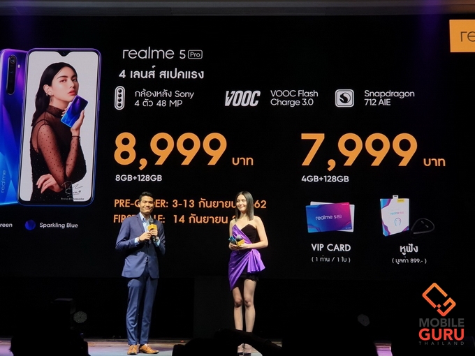 - realme 5 Pro ความจุ 8/128 ราคา 8,999 บาท 4/128 ราคา 7,999 บาท เปิดจอง 3-13 ก.ย. แถม VIP Card และหูฟัง วางจำหน่าย 14 ก.ย. เป็นต้นไป