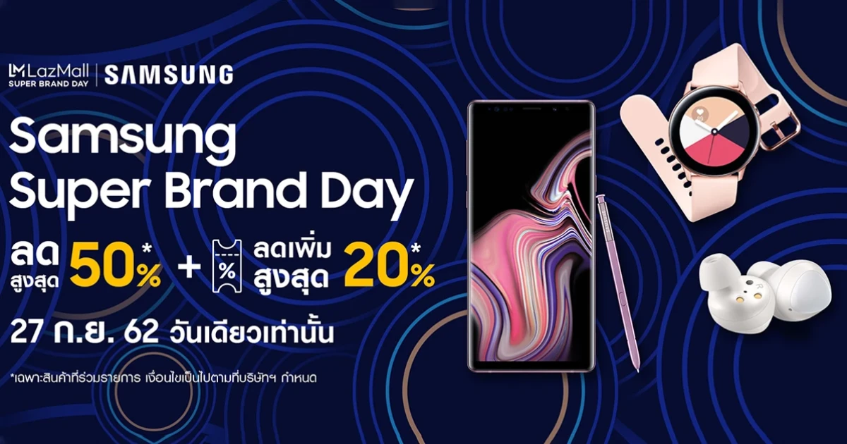 เตรียมตัว เตรียมกระเป๋าสตางค์กันให้พร้อม! กับสินค้าอิเลคโทรนิคส์ราคาพิเศษใน "ซัมซุง ซูเปอร์ แบรนด์ เดย์ (Samsung Super Brand Day)" ที่สุดของแคมเปญลดราคาสินค้าไอทีบนแพลตฟอร์มช็อปปิ้งออนไลน์ครั้งยิ่งใหญ่ที่สุดแห่งปี ที่ทาง "ซัมซุง อิเลคโทรนิคส์" และ "ลาซาด้า (Lazada)" ผนึกกำลังขนทัพอุปกรณ์ไอทีจากแบรนด์ซัมซุงทั้งเครื่องใช้ไฟฟ้า สมาร์ทโฟน และแก็ดเจ็ตสุดล้ำอื่นๆ มาหั่นราคาสูงสุดถึง 50% และลดเพิ่มได้อีกสูงสุดถึง 20% กับโค้ดสุดพิเศษ ให้สายช็อปได้จับจองเป็นเจ้าของกันได้แบบสบายกระเป๋า