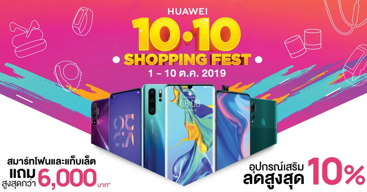 HUAWEI Shopping Fest ประเดิมโปรโมชั่นเดือนแรก 10 วันเต็ม! เริ่มวันที่ 1 - 10 ตุลาคมนี้ กับสมาร์ทโฟนรุ่นยอดนิยม ที่หัวเว่ยจัดมาร่วมโปรโมชั่นกันแบบจุกๆ
