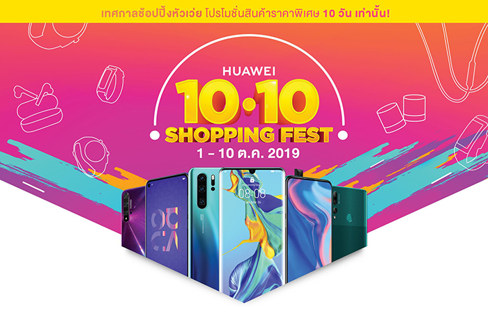 หัวเว่ย จัดแคมเปญ "HUAWEI Shopping Fest" ขนทัพสมาร์ทโฟนและแกดเจ็ตรุ่นยอดนิยมร่วมโปรโมชั่นสุดพิเศษพร้อมของสมนาคุณจุใจส่งท้ายปีตลอดไตรมาสสุดท้าย ตั้งแต่เดือนตุลาคม - ธันวาคม 2562 ต้อนรับเทศกาลแห่งการเลือกซื้อของขวัญ เตรียมตัวเตรียมกระเป๋าเงินกันให้ดี แล้วปักหมุดรอช่วงเวลาพิเศษนี้ โดยเริ่มเดือนแรก วันนี้ - 10 ตุลาคมนี้ ที่หัวเว่ยแบรนด์ช้อปทั่วประเทศ!