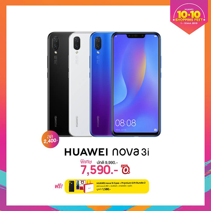 - HUAWEI nova 3i ปฏิวัติวงการเซลฟี่ ด้วยสมาร์ทโฟน 4 กล้องที่มาพร้อมระบบ AI อัจฉริยะ ในราคาพิเศษ 7,590 บาท พร้อมรับฟรี! Premium Gift Box และ HUAWEI nova 3i Case มูลค่า 1,580 บาท