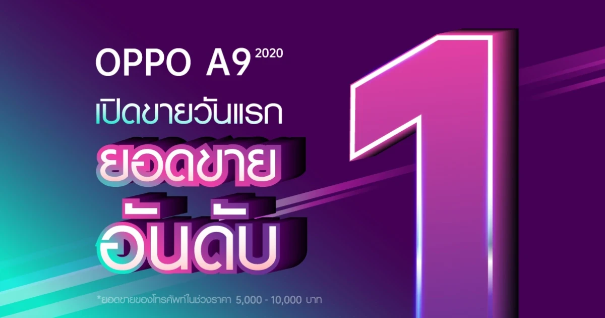 ฮอตสุด ฉุดไม่อยู่! OPPO A9 2020 ยอดขายถล่มทลายเข้าสู่อันดับ 1 ตั้งแต่วันแรกที่เปิดขาย