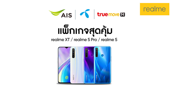 - realme XT รุ่นความจุ 8 + 128 GB เริ่มต้นที่ 4,999 บาท (จากราคาปกติ 10,999 บาท) โดยจะต้องสมัครแพกเก็จ 1,149 บาท
