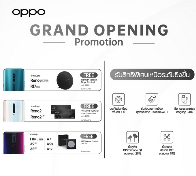 โดย OPPO Super Flagship Store ที่ห้างสรรพสินค้าเอ็มควอเทียร์ จะพร้อมมอบประสบการณ์สุดพรีเมี่ยมให้กับลูกค้าตั้งแต่วันที่ 18 ตุลาคมนี้ ควบคู่กับการโชว์วิสัยทัศน์ของ OPPO ที่มุ่งพัฒนานวัตกรรมต่างๆ เพื่อตอบโจทย์ความต้องการของลูกค้าที่เปลี่ยนแปลงอยู่เสมอ นอกจากนี้ยังมอบโปรโมชั่นและสิทธิพิเศษเมื่อซื้อสมาร์ทโฟนที่ OPPO Super Flagship Store ตั้งแต่วันที่ 18 - 31 ตุลาคมนี้ ซึ่งของสมนาคุณมีจำนวนจำกัด โดยทาง OPPO ยังคงมีแผนที่จะพัฒนาแบรนด์ช็อปอย่างต่อเนื่อง พร้อมมอบประสบการณ์ที่น่าสนใจและนวัตกรรมใหม่ๆ เพื่อมอบประสบการณ์ให้ดียิ่งขึ้นแก่ลูกค้าอย่างแน่นอน