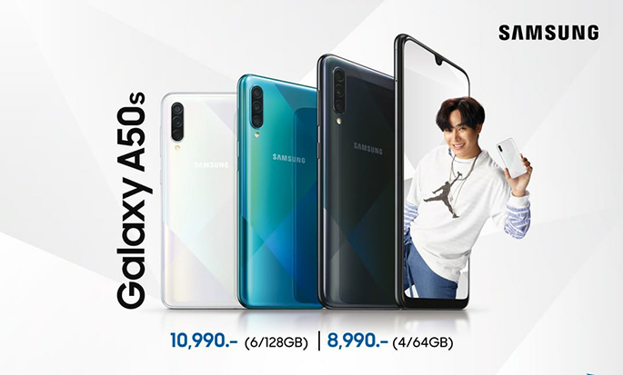 Samsung Galaxy A50s (RAM 4GB / ROM 64GB) น้องใหม่ สร้างขึ้นมาเพื่อเป็นตัวเลือกให้กับกลุ่มคนรุ่นใหม่ได้สนุกกับทุกจังหวะชีวิตด้วยราคาที่เข้าถึงง่าย ในประสิทธิภาพที่ไม่แพ้รุ่นพี่ ทั้งนี้ Galaxy A50s มีให้เลือกด้วยกันทั้งหมด 2 รุ่น ได้แก่ รุ่น RAM 6GB / ROM 128GB และ RAM 4GB / ROM 64GB มีทั้งหมด 3 สี ได้แก่ Prism Crush Black, Prism Crush White และ Prism Crush Green พร้อมวางจำหน่ายอย่างเป็นทางการทั่วประเทศตั้งแต่วันนี้ ในราคา 10,990 บาท (6GB / 128GB) และ 8,990 บาท (4GB / 64GB) ตามลำดับ
