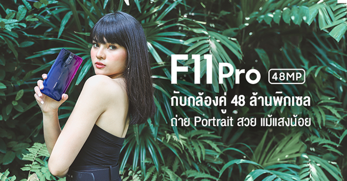 OPPO F11 Pro สมาร์ทโฟนกล้องหลังคู่ความละเอียด 48 ล้านพิกเซล "Brilliant Portrait" ที่มาพร้อมสเปกจัดเต็ม ในราคาใหม่สุดคุ้มค่า เริ่มต้นเพียง 8,490 บาทเท่านั้น โดยปรับราคาใหม่ตั้งแต่วันที่ 9 พฤศจิกายน 2562 เป็นต้นไป