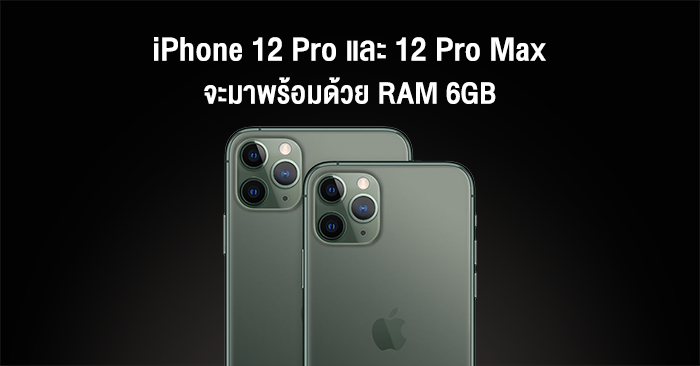 ล่าสุดมีข้อมูลที่น่าสนใจเกี่ยวกับสมาร์ทโฟนจากค่าย Apple หลุดออกมาครับ คาดการณ์ว่า iPhone 12 Pro และ iPhone 12 Pro Max จะมาพร้อม RAM 6GB และจะเปิดตัวในเดือนกันยายน 2563 ตามรายงานจากนักวิเคราะห์ของ Barclays Blayne Curtis โดยเมื่อเทียบกับรุ่นที่วางจำหน่ายในตอนนี้ทั้ง iPhone 11 Pro และ iPhone 11 Pro Max ล้วนมี RAM 4GB เท่านั้น โดยใน iPhone 12 ก็จะมี RAM 4GB เช่นกันครับ