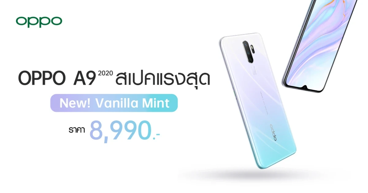 OPPO A9 2020 Vanilla Mint สีใหม่แห่งปี กับสเปคแรงสุด วางจำหน่ายแล้ว ในราคาเพียง 8,990 บาท