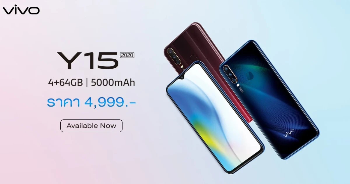 สำหรับใครที่สนใจ Vivo Y15 2020 พร้อมวางจำหน่ายในวันที่ 14 ธันวาคม 2562 กับราคาเพียง 4,999 บาทเท่านั้น โดยมีให้เลือกถึง 2 สีด้วยกัน ได้แก่ Burgundy Red ( สีแดง) , Phantom Black ( สีดำ) ท่านใดที่สนใจสามารถจับจองเป็นเจ้าของได้ที่ตัวแทนจัดจำหน่าย สมาร์ทโฟนชั้นนำทั่วประเทศ