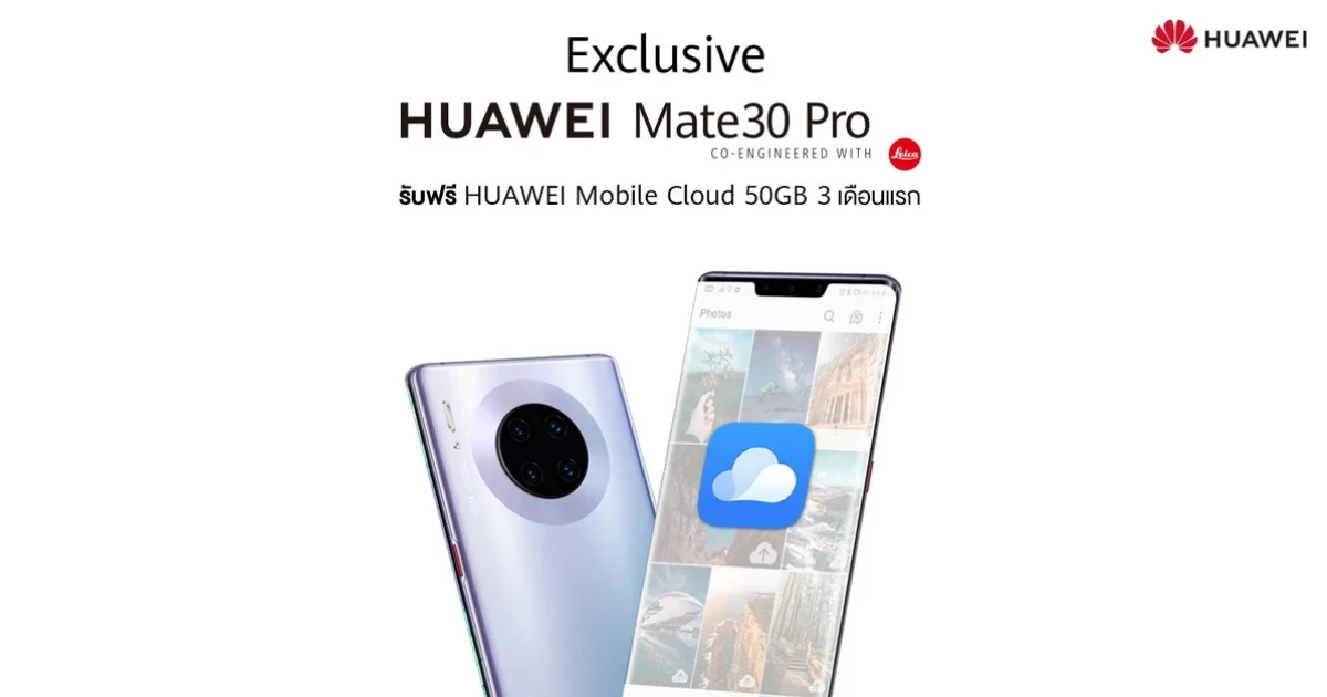 สิทธิพิเศษเฉพาะผู้ใช้ HUAWEI Mate 30 Pro รับฟรี HUAWEI Mobile Cloud 50GB 3 เดือนแรก