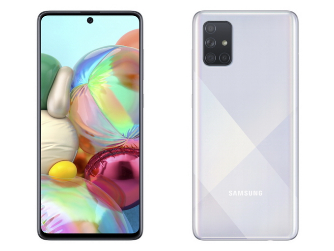 Samsung Galaxy A71 มาพร้อมดีไซน์แบบเดียวกัน หน้าจอ Super AMOLED ขนาดใหญ่ขึ้นเป็น 6.7 นิ้ว ความละเอียด Full HD+ 1080 x 2400 pixels (393 ppi) อัตราส่วนหน้าจอ 20:9, กระจก Corning Gorilla Glass 3, ทำงานบน Android 10 ครอบทับด้วย One UI 2, ชิปเซ็ต Qualcomm Snapdragon 730, GPU Adreno 618, RAM 8GB, ROM 128GB รองรับ MicroSD สุงสุด 512GB, Wi-Fi 802.11 a/b/g/n/ac, Bluetooth 5.0, NFC, USB Type-C, เซ็นเซอร์ Fingerprint (under display, optical), accelerometer, gyro, proximity, compass ANT+ และแบตเตอรี่ความจุ 4,500 mAh รองรับชาร์จเร็ว 25W