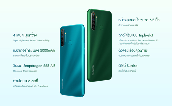 realme 5i สมาร์ทโฟนกล้องหลัง AI 4 เลนส์ แบตทรงพลังความจุถึง 5000 mAh
