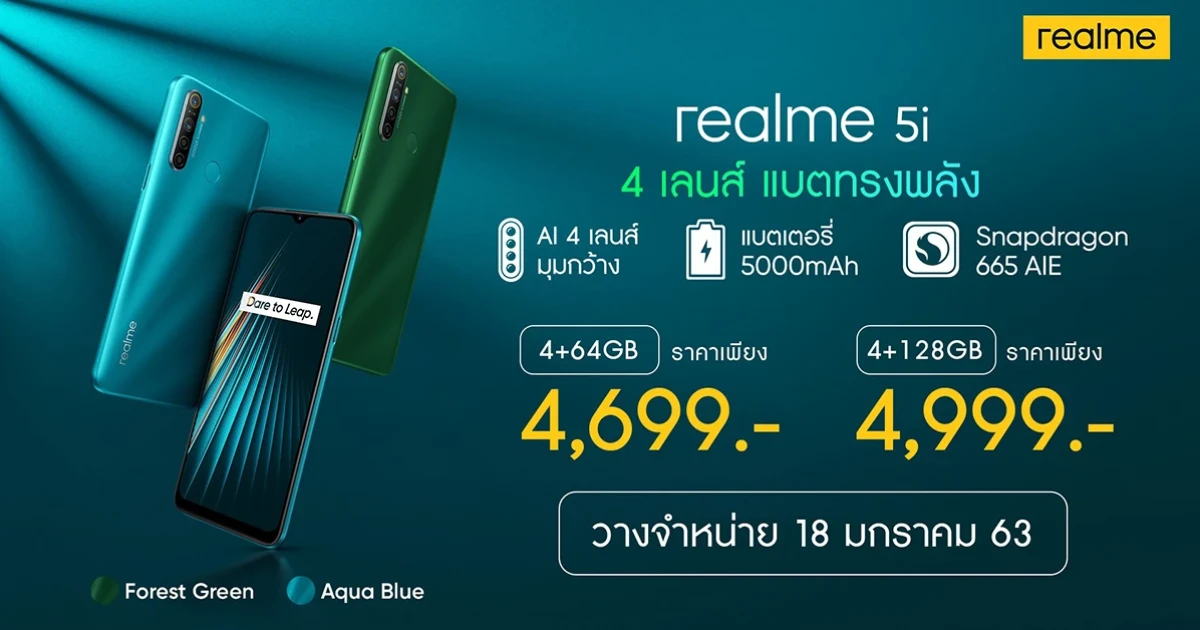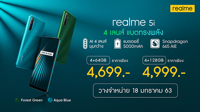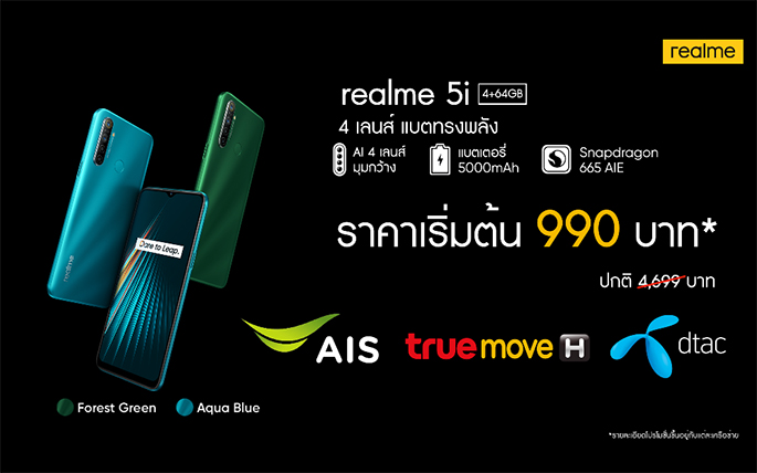 พิเศษ! สำหรับลูกค้า AIS, TrueMove H และ DTAC สามารถเป็นเจ้าของ realme 5i ความจุ 4 + 64 GB ในราคาเริ่มต้นเพียง 990 บาท