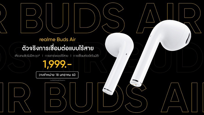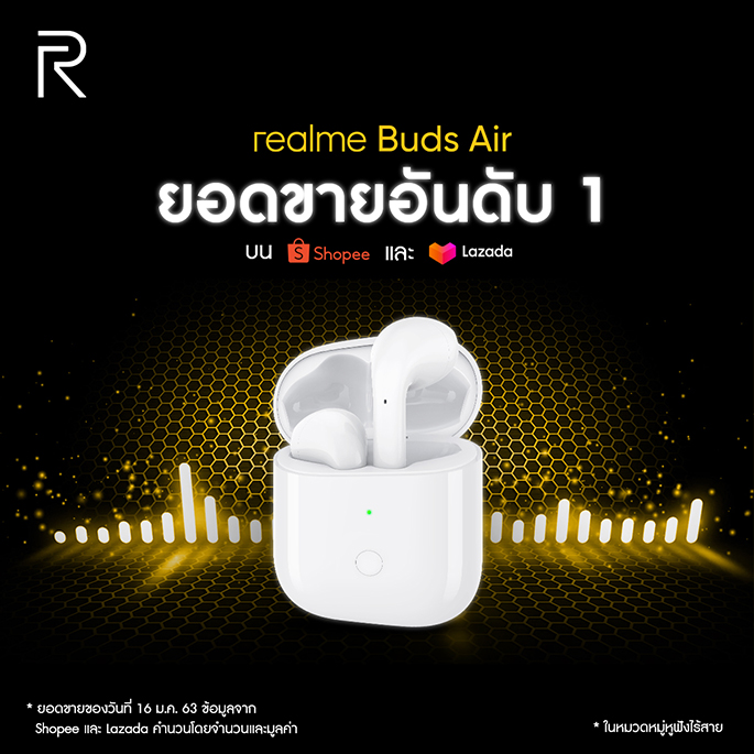 นอกจากนี้ realme ยังเปิดตัวไอเท็มสุดพิเศษ realme Buds Air หูฟังไร้สายที่มาพร้อมสโลแกน "ตัวจริงการเชื่อมต่อแบบไร้สาย" ที่จะช่วยสร้างอรรถรสเสียงของคุณให้มีคุณภาพและยกระดับการใช้ชีวิตของคุณให้ง่ายมากขึ้น การันตีความแรงโดยรางวัลยอดขายอันดับ 1 จาก Flash Sale ใน Shopee และ Lazada พร้อมวางจำหน่ายในวันที่ 18 มกราคม ในราคาเพียง 1,999 บาท ที่ realme Brand Shop ช่องทางออนไลน์ที่ Lazada และ Shopee