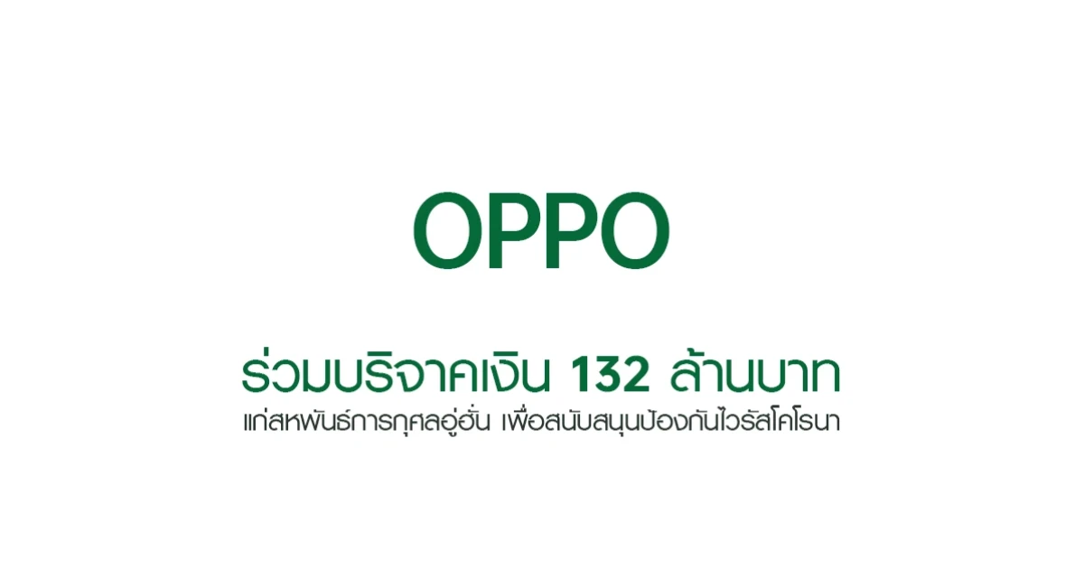 OPPO ร่วมบริจาคเงิน 132 ล้านบาท แก่สหพันธ์การกุศลอู่ฮั่น เพื่อสนับสนุนป้องกันไวรัสโคโรนา