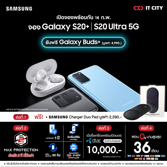 จอง Samsung Galaxy S20 Series ที่ CSC หรือ IT City ฟรี! Charger Duo Pad และส่วนลดค่าเครื่อง!