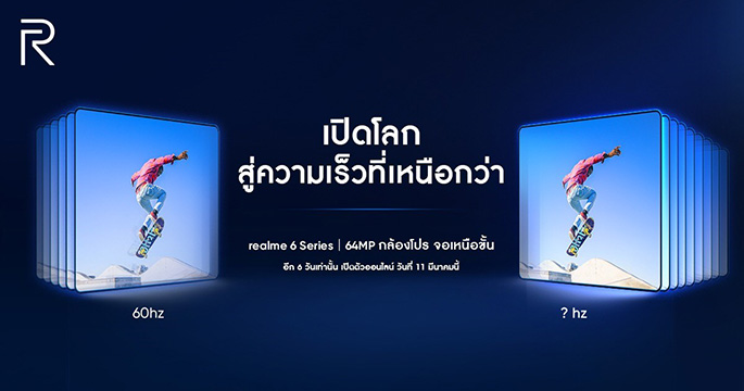 เรียลมี เตรียมเปิดตัว realme 6 และ 6 Pro สมาร์ทโฟนกล้องหลัง 64 ล้านพิกเซล พร้อมกัน 11 มี.ค.นี้