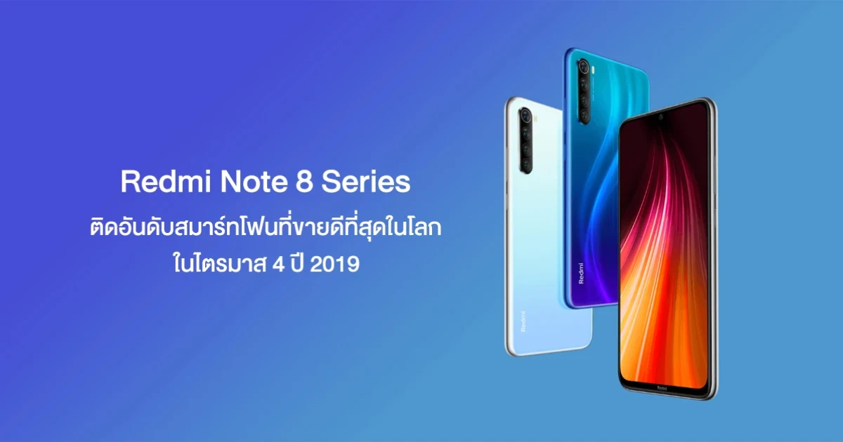 เสียวหมี่ Redmi Note 8 Series ติดอันดับสมาร์ทโฟนที่ขายดีที่สุดในโลก ในไตรมาส 4 ปี 2019
