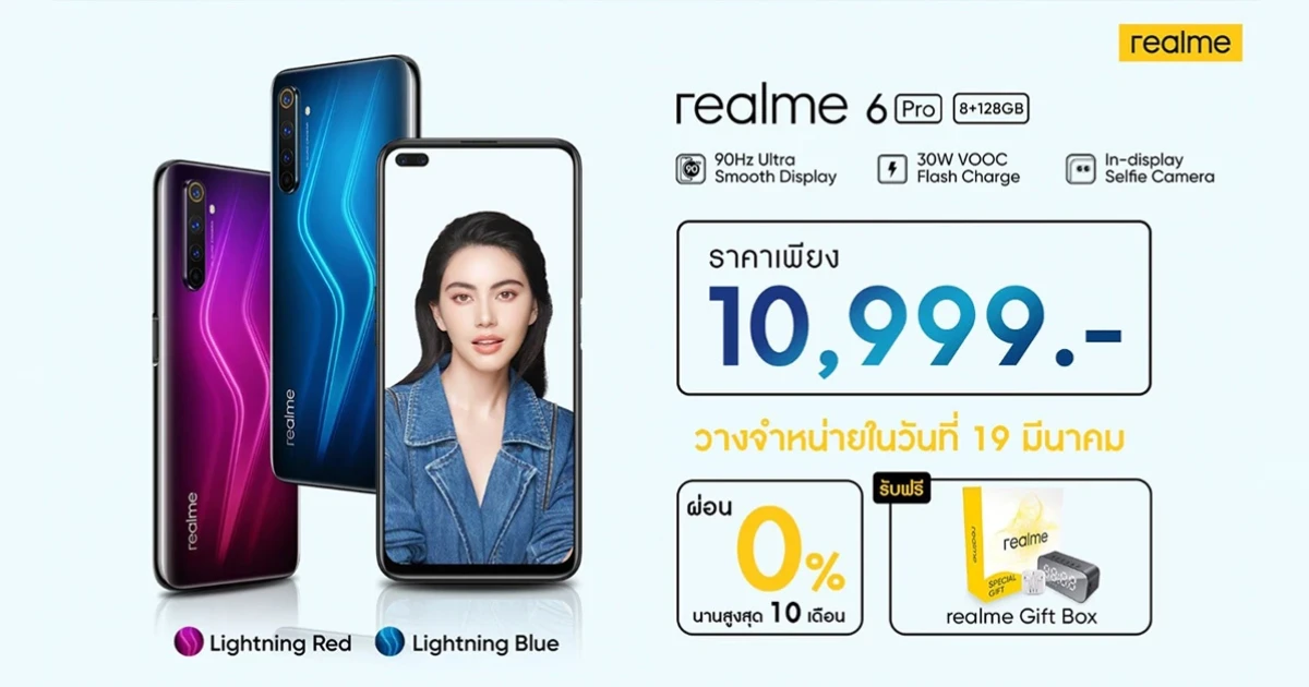 realme 6 Pro มือถือกล้อง 6 ตัว, หน้าจอ 90Hz วางจำหน่ายแล้ววันนี้! พร้อมโปรฯ ผ่อน 0% นาน 10 เดือน