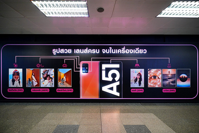 ซัมซุง อิเลคโทรนิคส์ ผู้นำด้านนวัตกรรมและเทคโนโลยีระดับโลก ร่วมกับ บริษัท แบงคอก เมโทร เน็ทเวิร์คส์ จำกัด (บีเอ็มเอ็น) ผู้บริหารพื้นที่เชิงพาณิชย์ในระบบรถไฟฟ้า MRT เนรมิตใจกลางสถานีสวนจตุจักร ให้กลายเป็น อินเตอร์แอคทีฟ แบรนด์ แกลเลอรี เป็นครั้งแรกในประเทศไทย ซึ่งนอกจากจะสะท้อนถึงภาพลักษณ์สนุกๆ สไตล์ Galaxy A แล้ว ยังบอกเล่าเรื่องราวความ Awesome สุดทุกเรื่องในเครื่องเดียวของสมาร์ทโฟนคู่ใจวัยรุ่น Galaxy A51 พร้อมยกแกลเลอรีสี่สาว แบล็กพิงก์ (BLACKPINK) ทั้ง เจนนี่ จีซู โรเซ่ และ ลิซ่า พรีเซ็นเตอร์ ซัมซุง กาแลคซี่ เอ ซีรีส์ มาแสดงกันแบบจัดเต็ม เริ่มตั้งแต่บันไดทางลงยาวไปจนถึงอุโมงค์ด้านในตัวสถานี โดยงานนี้ซัมซุงยังขนความพิเศษมาสำหรับเหล่าคอนเทนต์ครีเอเตอร์ (Content Creators) กับโซนถ่ายรูปสุดชิค และมีเดียแบบอินเตอร์แอคทีฟ (Interactive) บนหน้าจอ Dynamic Screen ที่มาพร้อมเทคโนโลยี AR ให้ร่วมสนุกหลากหลายรูปแบบ