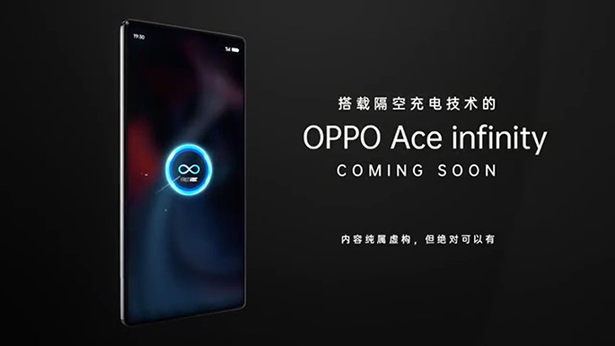 เมื่อต้นอาทิตย์ที่ผ่านมา ออปโป้ จัดโชว์เคสสมาร์ทโฟนรุ่นใหม่ที่มีชื่อว่า OPPO Ace Infinity ขึ้น ซึ่งตามข้อมูลบอกว่าสมาร์ทโฟนรุ่นนี้จะมากับเทคโนโลยีการชาร์จรูปแบบใหม่ FreeVOOC air-recharging technology ซึ่งสามารถรับกำลังไฟสำหรับการชาร์จแบตเตอรี่ความเสถียร 5 - 10W ได้ในระยะ 10 เมตร ซึ่งทางออปโป้ก็ได้ปล่อยวิดีโอสั้นๆ เกี่ยวกับเทคโนโลยีดังกล่าวนี้มาให้ชมกันด้วย