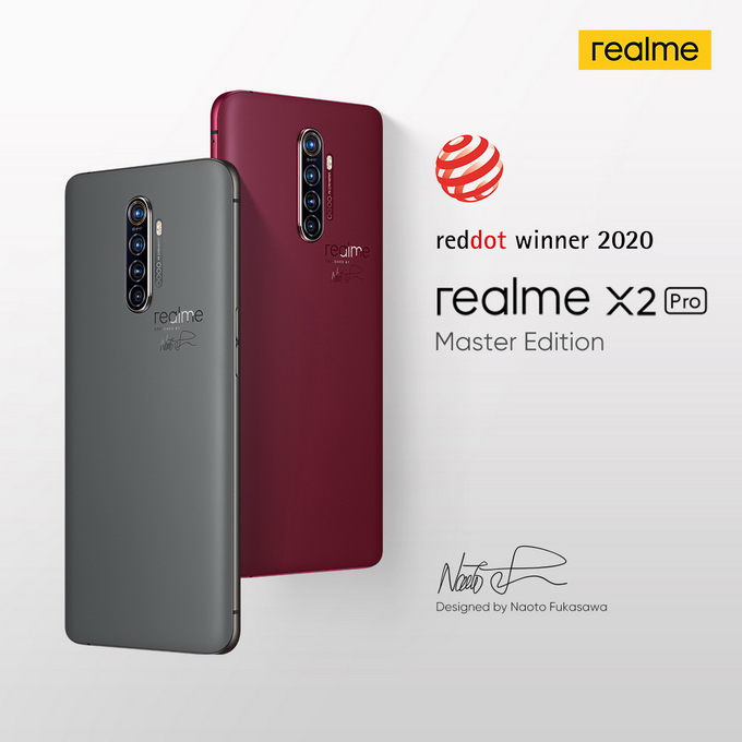 realme X2 Pro Master Edition ได้รับการออกแบบโดยการร่วมมือระหว่าง realme และดีไซเนอร์ชื่อดังระดับโลกอย่าง คุณนาโอโตะ ฟุคาซาวา ที่ร่วมกันสร้างสรรค์สมาร์ทโฟนที่มาพร้อมดีไซน์โดดเด่นมีเอกลักษณ์เฉพาะตัว คุณนาโอโตะ ฟุคาซาวา ดำรงตำแหน่ง Design Director ของ realme ซึ่งยึดแนวคิดการออกแบบโดยนำเสนอองค์ประกอบที่เรียบง่ายและแสดงถึงความงามของสิ่งรอบตัวรอบชีวิต โดย realme X2 Pro Master (สี Red Brick และ สี Concrete) ได้รับแรงบันดาลใจจากพื้นผิวของสถาปัตยกรรมรอบตัว โดยผู้ใช้งานจำนวนมากชื่นชอบในดีไซน์ที่ประณีตและเป็นเอกลักษณ์นี้